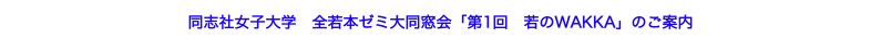 さて、このたび、英語英文学科創ゼミ10年となり、これを記念して全若本ゼミ大同窓会 (All Wakamoto Seminar Reunion)を開催するはこびとなりました。私達9期生で議論を重ねた結果、この大同窓会を「若のWAKKA」と命名し、5年に一度開催する計画を立てました。この同窓会を通してより、ゼミ卒業生同士の一層の交流が計れることを念願しております。